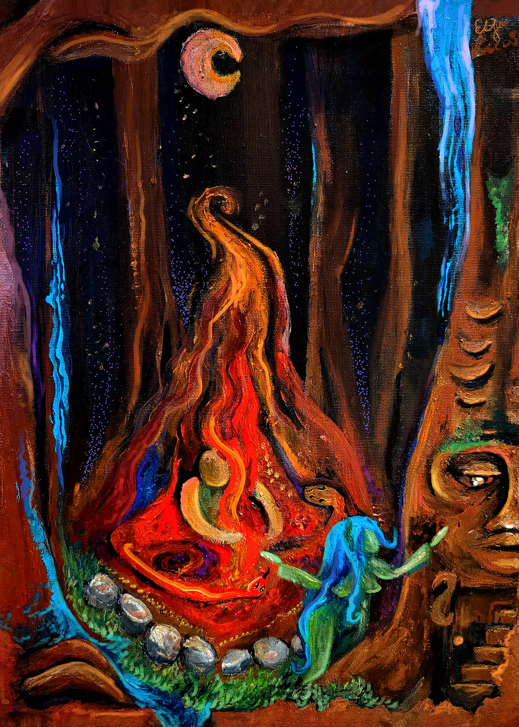 Ten obraz powstał na płótnie przy ogniu.